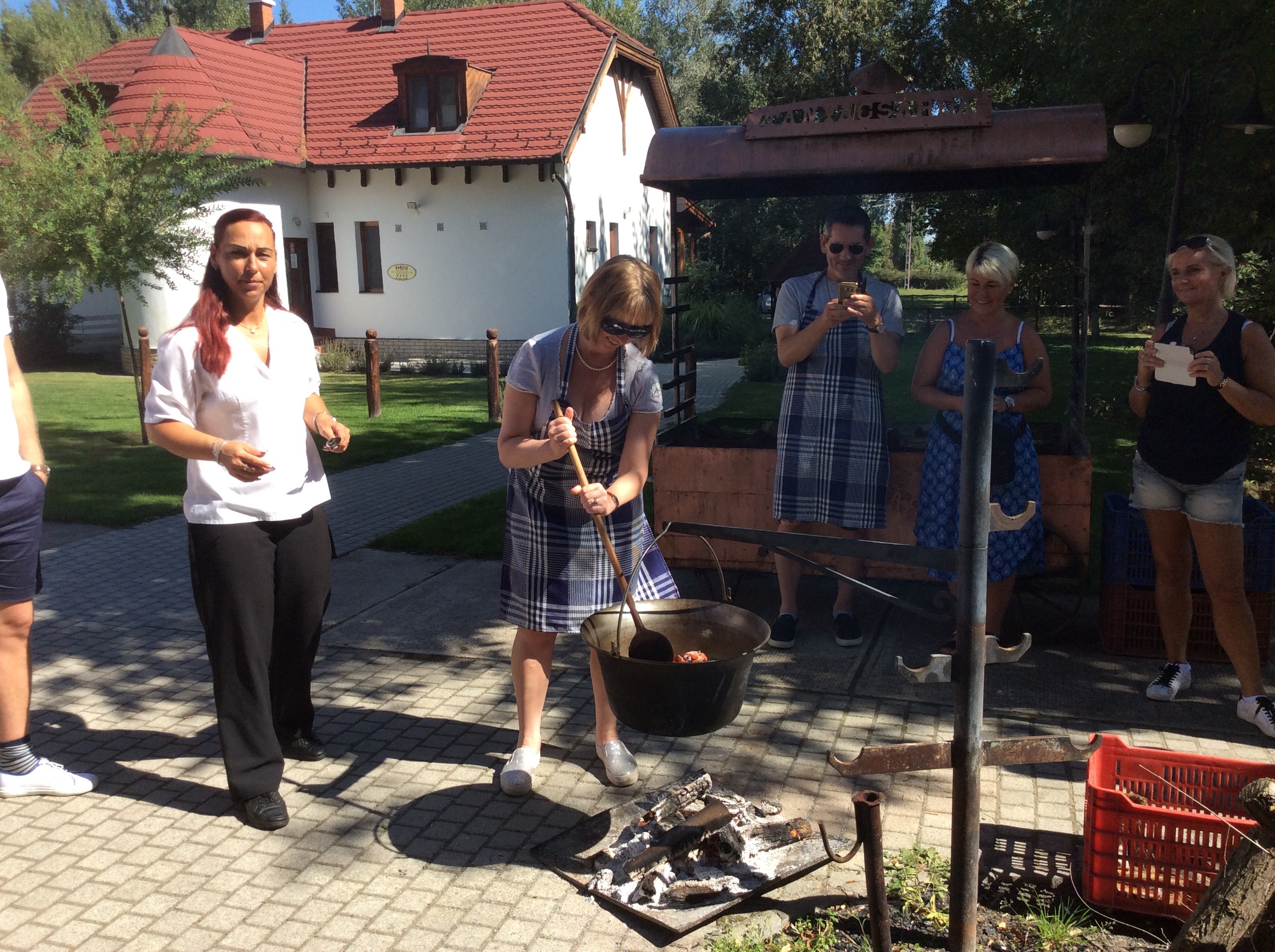 Ni som kommer med en grupp….. vill ni ha någon trevlig gemensam upplevelse ? En matlagningskurs kan skapa en gemytlig stämning, en matlagningskurs kan också ge en inblick i en annan kultur. Vi ser till att knivarna är nyslipade och förklädena är nystrukna. Det enda som ni ska ha med er är gott humör. Ni kan lära er att laga den traditionella ungerska gulaschsoppan, eller gulyas, som det står på de ungerska matsedlarna. En duktig kock handleder och resultatet är en rykande varm soppa över öppen eld. Efter kursen får ni förstås avnjuta den tillagade middagen tillsammans med ett gott vin.